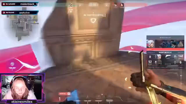 01:39:48Ein Zuschauer fragt nach ihrem Alter und Beruf. Die Streamerin antwortet, dass sie 22 Jahre alt ist und ab dem 1. Oktober als biologisch-technische Assistentin arbeitet und nebenbei streamt. Zuvor arbeitet sie noch als Aushilfe in einer Bäckerei. Sie spricht über ihren Stream-Alltag und die Schwierigkeit, einen passenden Zeitpunkt zum Streamen zu finden, da sie bald Vollzeit arbeitet. Sie überlegt, ob sie morgens um 6 Uhr streamen soll, ist sich aber unsicher, ob es dann genügend Zuschauer gibt. Die Streamerin kommentiert weiterhin ihr Gameplay in Valorant und hadert mit ihrer Leistung. Sie spricht über ihre Vorliebe für bestimmte Waffen und Maps und über ihre Erfahrungen mit anderen Spielern.