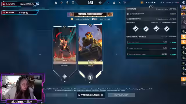 xkleinexmillex teilt Einblicke in Valorant-Partien und League of Legends-Spiele. Sie spricht über ihren baldigen Jobstart als BTA, die Schwierigkeit, Streamen und Arbeit zu vereinbaren, und die Herausforderungen im Team. Diskussionen über Spielstrategien und alltägliche Frustrationen runden das Programm ab. Ein Quiz und die Essenszeit lockern den Stream auf.