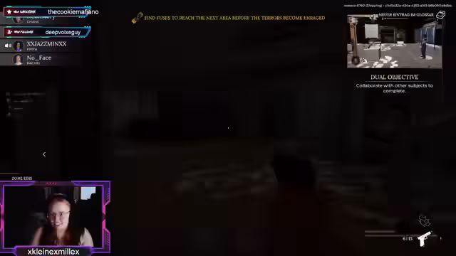 04:52:18Die Spieler beginnen aktiv, die Karte zu erkunden und nach Hinweisen zu suchen. Es werden Blutspuren und Gegenstände wie Leuchtfackeln und Kabel entdeckt, was zu einem intensiven Austausch über den Standort der Mitspieler führt. Ein Spieler äußert seine Angst und seine Unfähigkeit, andere zu erkennen, während ein anderer eine Rüstung trägt und sich in verschiedenen Ebenen der Karte bewegt. Das Zusammenspiel aus Entdeckung, Misstrauen und kooperativen Versuchen, Fuses zu finden, steht im Mittelpunkt der Handlung.