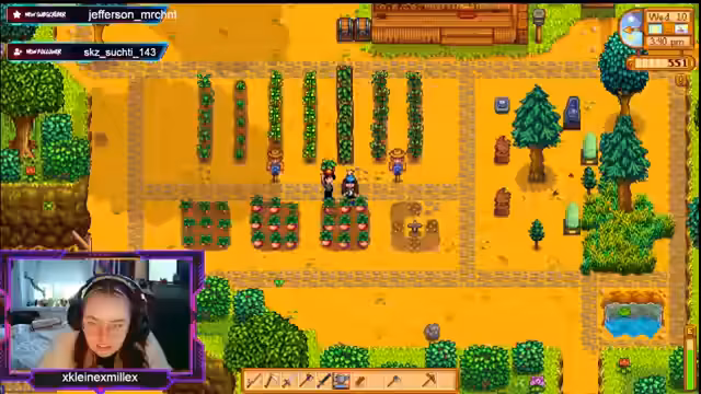 02:39:14Der Streamer und andere Spieler verwalten gemeinsam eine Farm, diskutieren Upgrades für Bewässerungsanlagen (Sprinkler) und planen den Anbau von Mais für Bundle-Quests. Sie tauschen Ressourcen wie Holz und Kupferbarren aus, um Kosten zu sparen, und koordinieren, wer welche Aufgaben übernimmt – von der Bewässerung der Felder bis zur Verwaltung von Tieren. Es geht auch um die Vorbereitung auf die Winterzeit, mit Überlegungen zu Heulagern und Tierhaltung.