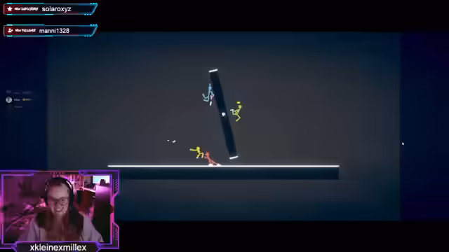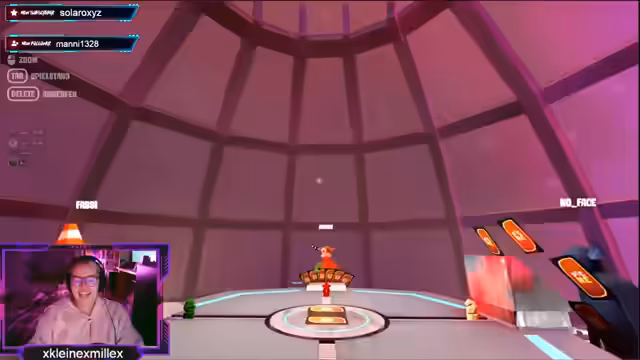 01:46:40Die erste Runde von Dickfight verläuft sehr turbulent. Spieler sterben sofort nach Spielbeginn und es herrscht allgemeine Verwirrung über die Spielsteuerung und die Zielsetzung. Es entbrennt ein Wettlauf um die erste Waffe, während versucht wird, einem KI-Gegner auszuweichen. Der hohe Tempo des Spiels sorgt für viel Action und Unordnung.