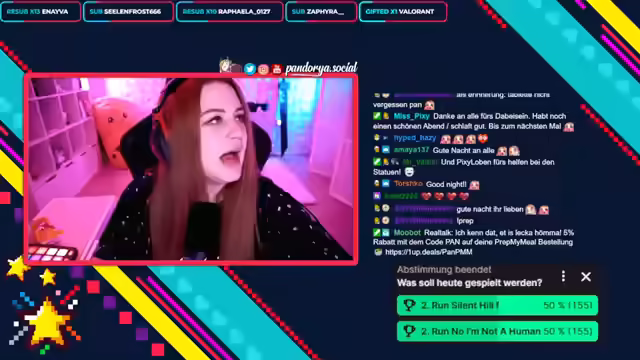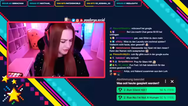 xPandorya startet einen zweiten Spieldurchgang von Silent Hill F, nachdem eine Zuschauerabstimmung ein knappes Ergebnis lieferte. Ein Münzwurf entschied zugunsten des Spiels. Die Zuschauer werden vor Spoilern gewarnt, da die Streamerin plant, das Spiel zügig durchzuspielen und Cutscenes zu überspringen. Sie interagiert mit dem Chat, um gemeinsam das beste Ergebnis zu erzielen und Rätsel zu lösen.