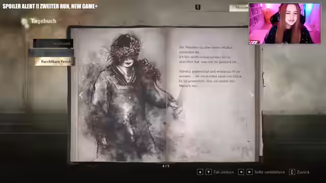 04:31:31Der Bosskampf steht bevor, und die Person erinnert sich daran, wie oft sie dabei gestorben ist. Es wird erwähnt, dass es eine neue Schwierigkeitsstufe im Nebel gibt. Die Person kann sich nicht an die Gamepad-Steuerung gewöhnen und muss durchhalten. Die Person interpretiert die Reaktionen einer Figur als Anzeichen einer Panikattacke, basierend auf eigenen Erfahrungen mit einer Angst- und Panikstörung. Ein Foreshadowing wird entdeckt, und es wird nach Stofffetzen gesucht. Es wird ein Bild von Wasser, Erdbeuteln und Wäsche im Hintergrund gezeigt, um nach Hinweisen zu suchen. Die Person fragt sich, warum sie die Drecksarbeit machen soll. Es wird festgestellt, dass man an einer Stelle nicht weiterkommt. Es wird überlegt, wo sich eine Brücke befindet. Es wird ein EMA-Brett benötigt. Die Person lässt sich vom Chat helfen, um den richtigen Weg zu finden. Ein Werkzeugsatz wird gefunden, und die Person muss die Statue suchen. Es wird festgestellt, dass die Jinsu-Statue sagt, was man opfern muss und wo man es findet. Die Person geht zum Familienschrein. Es werden Kartoffeln erwähnt, und die Person hat Lust darauf. Es wird ein rotes Objekt bei den Füchsen entdeckt. Eine Thermoskanne und ein antiker Kamm werden gefunden, was die Person begeistert.