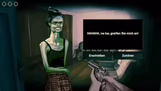 03:46:18Die Nachrichten berichten von der Federal Emergency Management Agency (FETA), die sich der Krise annimmt und neue Merkmale der Besucher identifiziert hat: Dreck unter den Fingernägeln. Es wird dazu aufgerufen, verdächtige Aktivitäten zu melden und die Hotline der FETA anzurufen. Ein bleicher Psychopath treibt in der Stadt sein Unwesen und ermordet einsame Menschen. Die Polizei hat ein Phantombild erstellt. Ein Charakter berichtet, sich nicht mehr über andere aufzuregen, da es das nicht wert sei. Er sehnt sich nach einem Energy Drink. Eine Mutter mit ihrem Sohn sucht Schutz, und es wird angedeutet, dass der Sohn sich unwohl fühlt. Die Mutter wird getestet, und es wird die Frage aufgeworfen, wer tot ist. Es wird erwähnt, dass Alpha Kevin getötet wurde. Eine esoterisch angehauchte Person analysiert die Protagonistin und spricht von verschlossenen Türen und bevorstehenden Tests. Die Augen werden als Spiegel des inneren Kosmos bezeichnet. Ein riesiger Typ versperrt die Tür, und es kommt zu einer bedrohlichen Situation. Die medizinische Abteilung der FETA bietet Selbsttests auf Merkmale von Besuchern an und gibt Anweisungen, wie diese korrekt durchgeführt werden. Es wird erneut versucht, den Lieferservice Forrest zu erreichen, aber ohne Erfolg. Es wird vor roten Augen, gelben Zähnen und Dreck unter den Fingernägeln gewarnt, da dies Zeichen eines bösen Geistes sein könnten. Eine kleine Gruppe von FETA-Mitarbeitern steht am Haus des Nachbarn. Bewaffnete Soldaten werden gesichtet, die nach einem bleichen Mann mit Aknoberkörper suchen. Ein Fremder bittet um Einlass, wird aber aufgrund einer Abstimmung im Chat abgewiesen. Er deutet an, dass gewisse Dinge bevorstehen und dass man die Personen mit der Katze reinmachen müsse.