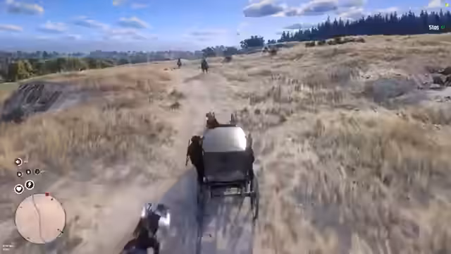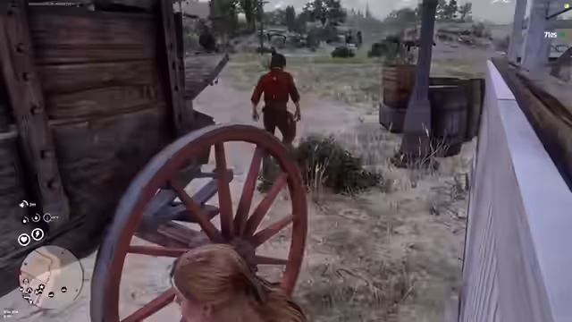03:55:51Dee und Joe untersuchen einen Tatort mit Nägeln, die in Hände geschlagen wurden, was auf Folter hindeutet. Sie finden Blutreste und zerfetzte Gegenstände, ähnlich einem anderen Lager, aber ohne Tierspuren. Ein Telegramm deutet darauf hin, dass jemand gefangen genommen wurde. Sie sehen eine Rüstung von Natives und diskutieren über Warnsignale. Sie treffen auf einen anderen Spieler am Baum. Sie reiten um einen See und entdecken eine Kutsche mit Blut am Boden und Fluchtspuren. Dee äußert den Wunsch, mit ihren Kräften etwas zu bewirken und mit einer alten Frau zu sprechen. Sie erinnert sich nicht genau, ob die Schrankthematik zu dem Mädchen gehörte. Sie fragt Moon nach dem Weg nach Strawberry und bemerkt, dass sie in die falsche Richtung reiten muss. Sie kommen an einem Dorf vorbei und werden von einem Mann gewarnt, dort nicht zu warten.
