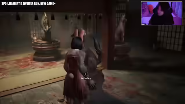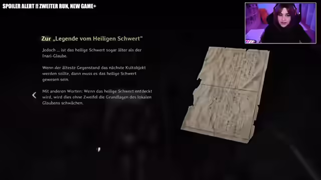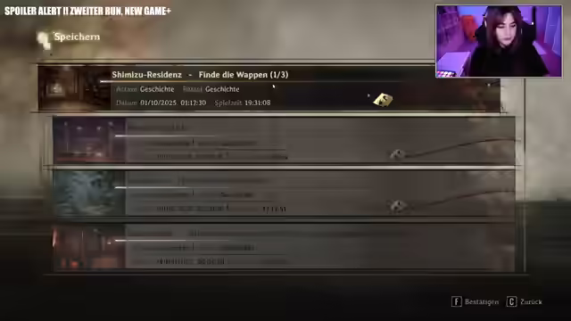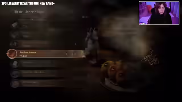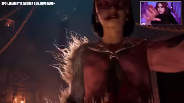 07:01:57Die Streamerin setzt ihren zweiten Spieldurchlauf fort und kämpft mit schwierigen Passagen und Rätseln. Sie erinnert sich an eine Stelle, an der ihr eine Zuschauerin geholfen hat und bedauert, dass ihr Kameralicht ausgefallen ist. Sie kämpft sich durch Gegnerhorden und versucht, den Fokusangriff richtig einzusetzen. Sie findet einen Raum mit Fuchsstatuen und muss herausfinden, in welche Richtung diese schauen. Die Streamerin äußert ihren Unmut über die Rätsel und die Kämpfe im Spiel. Sie findet Extrakisten mit nützlichen Gegenständen und erreicht einen Speicherpunkt. Sie erinnert sich an eine Tür, wo am wenigsten Blut vor war und fragt den Chat um Rat bezüglich der Bilder. Durch den Chat findet sie die Lösung für das Rätsel und kommt weiter. Sie spricht über die Charaktere im Spiel und deren Schicksale.