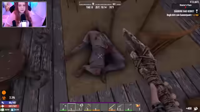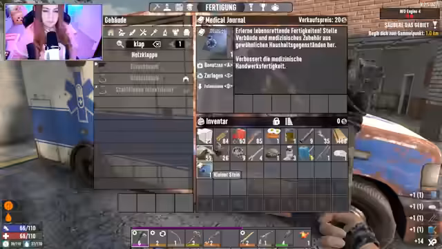 04:20:46Der Streamer kämpft mit der Verwaltung seiner Ressourcen und der ständigen Bedrohung durch Zombies. Er leidet unter Hunger und Verletzungen, wobei sein Fokus auf dem Sammeln von Nahrung und medizinischen Vorräten liegt. Er versucht, zum Trader zu gelangen, um Gegenstände zu verkaufen und benötigte Magazine wie die 'Tools Digest' zu erwerben, stößt aber auf finanzielle und logistische Probleme. Eine angenommene Quest gestaltet sich als schwierig und unerreichbar.