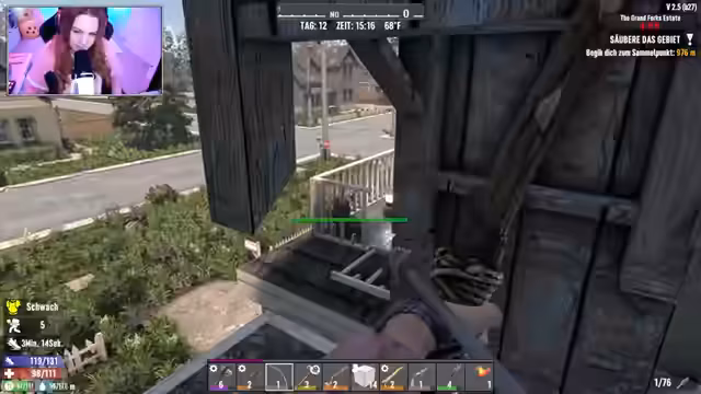 02:15:19Die Erkundung der Spielwelt ist von ständiger Gefahr und Anspannung geprägt. Der Streamer gerät in mehrere kritische Situationen, in denen er von Zombies, insbesondere den als 'Feral' bezeichneten, aggressiven Gegnern, überrascht und angegriffen wird. Er sammelt zwar nützliche Ressourcen wie Honig, Magazine für Waffen und Baupläne, muss aber häufig fliehen oder ist gezwungen, seine Ausrüstung aufzugeben. Besonders dramatisch ist der Moment, als er sich in einer fremden Umgebung ohne Rucksack und wichtige Vorräte wiederfindet. Er erleidet erheblichen Schaden und verliert Ressourcen, was ihn zu der überstürzten Entscheidung treibt, sich einen Unterschlupf zu suchen und sich mit einer improvisierten, selbstgebauten Brücke in Sicherheit zu bringen.