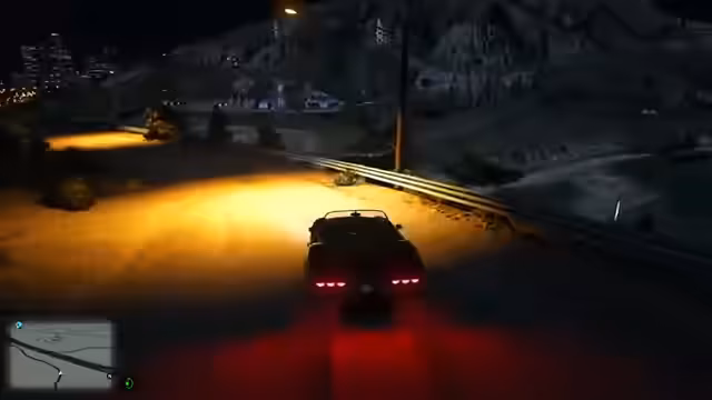 01:17:41Die Einheit zu Weinburg-Schild fährt durch die Stadt Richtung Osten, biegt Richtung Norden ab und weiter Richtung Norden, östlich vom Golfplatz. Sie fahren zur Westseite des Ententeichs Richtung Observatorium. Die Einheit bleibt an der nördlichsten Straße an den Bergen entlang und fährt weiter Richtung Westen. Es werden Standorte wie LS Customs und Rockford Plaza passiert, während das Fahrzeug beschleunigt über 80 mph fährt.