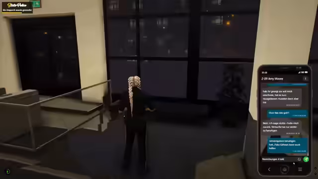 00:33:28Die Streamerin beginnt mit dem Gameplay von GTA RP, wo sie als Polizistin in Dienst geht. Sie interagiert mit anderen Spielern, nimmt Anrufe entgegen und übernimmt verschiedene Aufgaben innerhalb des Spiels. Dabei zeigt sie ihre Professionalität in der Rolle und reagiert auf verschiedene Situationen im Spiel.
