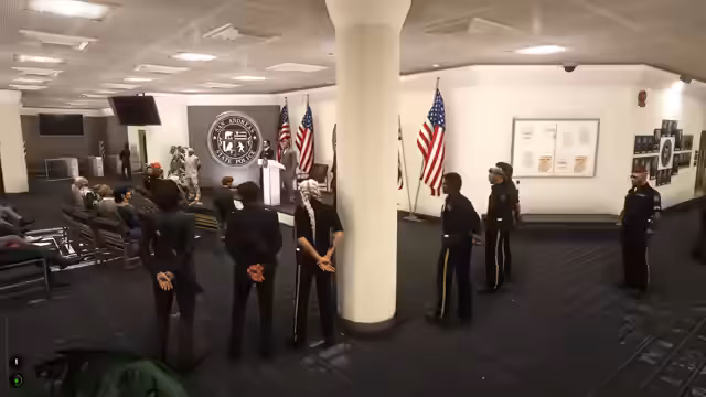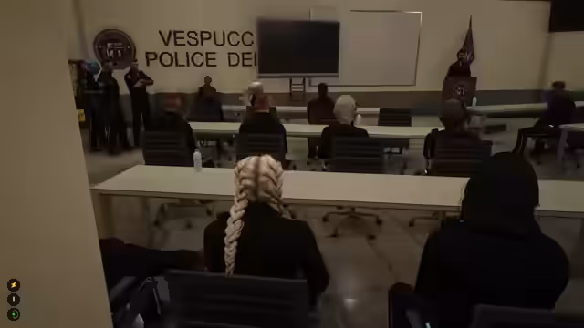 00:24:03Im Rollenspiel übernimmt Ariane Kurayame ihre Rolle als Polizistin im Vespucci Police Department (VPD). Nach einem Rettungseinsatz, bei dem sie aus einer Gefahrenlage befreit wird, eilt sie zum Dienst. Dort wird sie über einen bevorstehenden Sonderrollcall informiert, bei dem der Gouverneur anwesend ist und die aktuelle Lage in der Stadt angesprochen wird. Der Fokus liegt auf einer geplanten Demonstration, bei der es zu Ausschreitungen kommen könnte, und die Polizei wird auf einen potenziellen Einsatz vorbereitet.