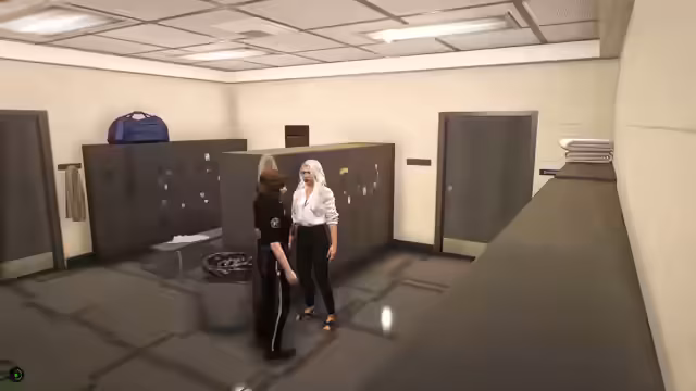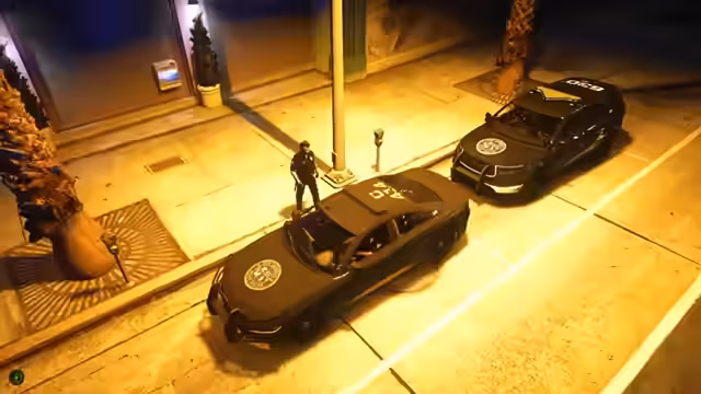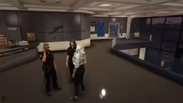 04:51:36Ein aktiver Einsatz wird gemeldet, bei dem eine Person südlich von Raiden Canyon auf der Flucht ist. Ariane und die Begleitung verfolgen die Spuren und sichten den Verdächtigen. Die Gelegenheit wird genutzt, um im Polizeipräsidium herumzuschauen und in Erinnerungen zu schwelgen. Es wird über alte Zeiten gesprochen, wie die 'Wurstpumpe' im Foyer und der Wunsch, verschiedene Abteilungen wie die Forensik kennenzulernen, diskutiert. Die Freude an den sozialen Interaktionen im Rollenspiel wird betont.