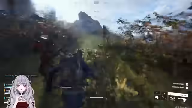01:25:39Die gemeinsame Runde beginnt. xpandorya ist begeistert von der Frauenstimme, die er nun im Spiel hört, und es kommt zu einem ersten Kontakt mit einem feindlichen Gegner, einem großen 'Hund', der sie angreift. xpandorya ist in diesem Moment verwirrt über die Spielmechaniken und reagiert unkoordiniert. Seine Mitspieler müssen ihm helfen, die Bedienelemente zu verstehen, und er versucht, sich und seine Teamkameraden aus dem Kampf zu manövrieren, während er nach Heilungsmitteln sucht.