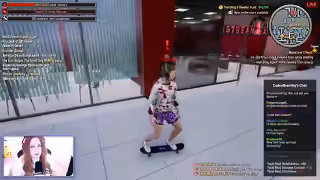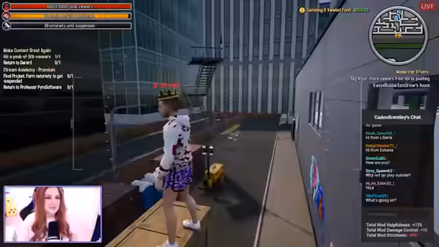 03:22:59Der Stream erreicht einen Höhepunkt mit über 72.000 Viewern und mehreren bemerkenswerten Spielsequenzen. Dazu gehören Auseinandersetzungen mit anderen Spielern, das Einfangen eines Charakters namens Caden und das Erringen des Titels 'Content King'. Es kommt zu humorvollen Interaktionen wie der Teilnahme an Autorennen und der Nutzung von Drogen im Spiel.