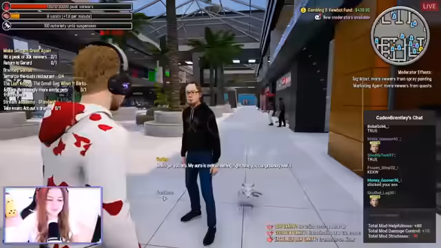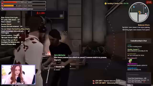 00:33:37Der Stream setzt sich mit dem Gameplay von Content King fort. Die Streamerin und ihre Gruppe sind im Einkaufszentrum und sollen einem Charakter helfen. Sie interagiert intensiv mit dem Chat, lieste Kommentare und dankt für Spenden. Während des Gameplays gibt es lustige Momente und Abenteuer, wie die Konfrontation mit einem König namens Fentonthorn.