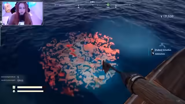 01:10:06Während des Spiels sammelt der Streamer Fische, um sein Boot aufzurüsten, und erkundet verschiedene Inseln. Er stößt auf seltsame Objekte und Mechaniken, wie eine umdrehbare Alu-Muschel. Nach und nach platziert er die gefundenen Glocken an Bojen, was die Spielwelt weiter erschließt. Bevor der Stream für den Tag beendet wird, kommt es zur ersten direkten Begegnung mit dem großen Meermonster, was den Höhepunkt des Spiels darstellt und den weiteren Verlauf der Handlung andeutet.