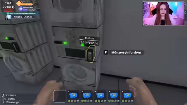 06:30:54Die Streamerin hat eine Begegnung mit Slenderman, der sich als nicht gruselig herausstellt und ihr ein Geschenk überreicht, ein Slendys Plakat, das sie in ihrer Wäscherei aufhängt. Es gibt neue Rechnungen und die Streamerin muss sich um den Minimarkt kümmern, um die Aufgaben zu erfüllen. Sie stellt fest, dass sie die Alva unbedingt braucht und dass es wichtig ist, jetzt richtig ranzuklotzen. Die Streamerin zieht Clowns an und muss sich mit Rauchern auseinandersetzen, die sie aus der Wäscherei vertreibt. Es kommt zu einem Einbruch und ein Kunde kotzt in den Laden. Die Streamerin muss sich um die Reinigung kümmern und gleichzeitig den Kunden bedienen. Sie ist überfordert und wünscht sich, sie könnte sich zweiteilen. Die Streamerin stellt fest, dass ihr Mitarbeiter überfordert ist und dass sie ihn möglicherweise woanders hinstellen muss. Es gibt eine Bombe in der Waschmaschine und die Streamerin ist verwirrt über die vielen zufälligen Ereignisse im Spiel. Sie plant, mehr Automaten zu holen, um die 60 Kunden im Münz-Waschsalon bedienen zu können. Die Streamerin trifft auf einen YouTuber, den sie verwechselt, und kauft einen kleinen Bügelfarbe.