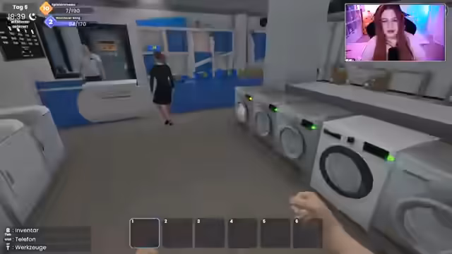 04:32:45Der Streamer startet seine eigene Wäscherei im Spiel. Er beginnt mit einer gebrauchten Waschmaschine, lernt die grundlegenden Abläufe wie Wäsche waschen, trocknen und falten. Er muss gleichzeitig auf die Kunden eingehen, Wäsche abholen und die Finanzen verwalten, was anfangs zu stressigen Situationen und Überforderung führt. Das Ziel ist es, erfolgreich den ersten Tag zu überstehen.