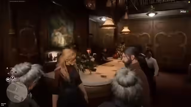 06:14:06Nach der Trauung in der Bar folgt eine ausgelassene Feier mit mehreren Personen. Das frisch vermählte Paar wird von den Anwesenden beglückwünscht, während es über die Neuigkeit der Heirat spricht. Es entstehen humorvolle Interaktionen, bei denen die Ehefrau stolz ihren neuen Mann präsentiert und die Gäste zu Trinkgeldern animiert. Gleichzeitig gibt es Verwunderung über die unerwartete Schießerei, bei der ein Stuhl zerstört wurde, wobei die Ursache unklar bleibt.