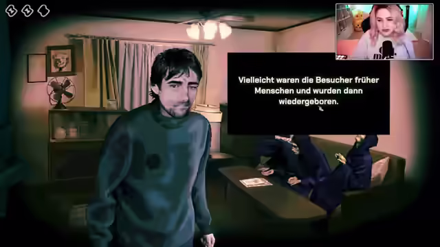 01:24:53Es wird ein Gespräch mit einer Spielfigur geführt, die erklärt, dass man Leute reinlassen soll, aber auf Anzeichen für Besucher achten muss. Die Figur rät, sich gut zu überlegen, wen man testet, da die Tests anstrengend sind, Gespräche aber keine Energie kosten. Es wird die Hoffnung auf Hilfe durch die Regierung und einen sicheren Ort geäußert. Die Spielfigur bietet an, bei ihrer Familie zu bleiben und hinterlässt ihre Nummer. Es wird ein Kasten Bier erwähnt, den man vor dem Schlafengehen trinken soll, um müde zu werden. Es werden verschiedene Gegenstände im Haus untersucht, darunter ein Schrank mit Geschirr und ein Spielzeug. Eine Kiste, über deren Öffnung seit 15 Jahren nachgedacht wird, wird erwähnt. Es wird die Frage aufgeworfen, ob die Charaktere im Spiel zufällig sind oder immer gleich. Eine Zuschauerin fragt, warum die als Besucher entlarvten Personen in der Demo nicht erschossen wurden, woraufhin erklärt wird, dass dies in der Vollversion anders sein könnte. Ein Kind klopft an die Tür und bittet um ihren Vater, was zu Spekulationen führt, ob es sich um einen Test handelt.