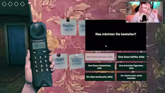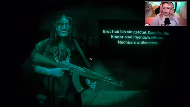 02:00:40Es wird die Frage aufgeworfen, ob es sich lohnt, sich über andere aufzuregen, und festgestellt, dass das Leben auch ohne den ganzen Mist schon trostlos genug war. Es folgen kryptische Andeutungen über das Überleben in schwierigen Zeiten, das Verstecken und Stehlen von Essen. Im Spiel trifft die Streamerin auf verschiedene Charaktere, darunter einen Mann, der etwas zu kiffen sucht und getestet werden möchte, sowie einen Hellseher, der Ratschläge zur Austreibung von Besuchergeistern gibt. Dieser rät unter anderem davon ab, Kombucha zu trinken, da dieser von einem Geist kontrolliert werden kann. Ein Nachbar berichtet von getöteten Jugendlichen und einem bleichen, großgewachsenen Ding, das seine Tochter gesehen hat. Die Streamerin spricht über die Schwierigkeit, Spoiler zu vermeiden, und bemerkt, dass eine Spielfigur weint.