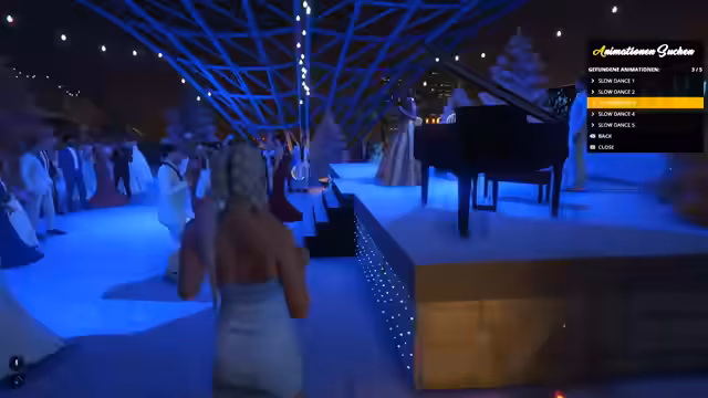 02:48:41Feenfieber, die Pianistin, übernimmt die Bühne und spielt ein sanftes Klavierstück. Ariane und Joske tanzen gemeinsam im eleganten Ambiente. Die Musik verzaubert die Gäste, und das Paar genießt den Moment. Es wird betont, wie schön es ist, zusammen zu sein und die Atmosphäre des Events zu erleben. Der Auftritt wird als romantisch und verbindend beschrieben.