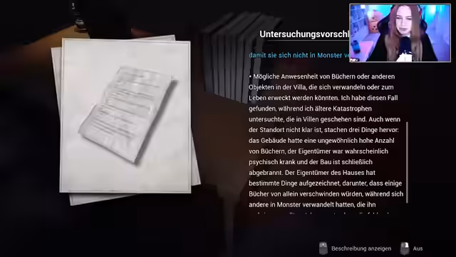 04:13:09Der Streamer berichtet über den Fortschritt bei der Lösung verschiedener Rätsel in der Villa, wie im Saloon, der Kunstgalerie und dem Arbeitszimmer. Er findet diverse Objekte wie VHS-Bänder, Bücher und Notizen. Er erwähnt, dass nach Lösung eines Rätsels ein automatisches Speichern erfolgt, was ihm Sicherheit gibt. Gleichzeitig äußert er sich über die schwierige Orientierung im Gebäude und die Angst, wichtige Räume zu übersehen.