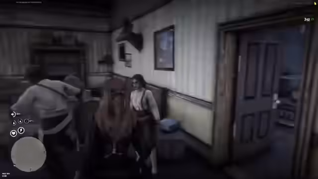 02:15:40Nachdem eine Figur einen Schlangenbiss erlitten hat, geht sie zum Arzt in Blackwater, um die Wunde behandeln zu lassen. Der Arzt untersucht das Bein, desinfiziert es, trägt eine Salbe auf und verbindet die Stelle. Es wird eine Rechnung von 30 Dollar für die Behandlung und eventuelle Nachbehandlung gestellt. Gleichzeitig gehen die Charaktere zu einem Büchsenmacher, um Waffen zu kaufen und zu modifizieren. Dort erfahren sie jedoch, dass die Preise für Waffen und deren Verzierungen in letzter Zeit stark gestiegen sind, was die geplanten Käufe unrealistisch macht.