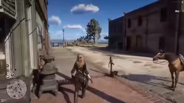 02:40:03Obwohl ursprünglich geplant, geht die Reise nicht direkt nach Van Horn, sondern die Charaktere beschließen, zuerst nach Enesburg aufzubrechen. Dort wollen sie einen Revolver kaufen und eine Revolver-Besitzerin aufsuchen. Es wird ein Pläuschchen mit dem Büchsenmacher gehalten, bei dem sich die Charaktere über die hohen Preise für Waffenanpassungen beklagen und eine Toilette gesucht wird. Die atmosphärischen Details des Ladeninneren werden gelobt, und der Fokus liegt auf dem bevorstehenden Ziel Enesburg und der Interaktion mit dortigen Figuren.