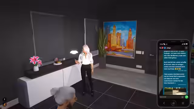 00:52:25Die Aufmerksamkeit gilt intensiv dem privaten SMS-Verkehr. Es geht um den Kauf einer Bananente im realen Leben, den sie gemeinsam mit ihrem Partner vorantreiben. Der Austausch mit Freundinnen wie Kiki und Lucy wird geschildert, wobei bei Kiki eine Enttäuschung über Freundschaft erwähnt wird. Auch ein Arzttermin und ein geplanter Kochabend mit Aurelia sind Themen.