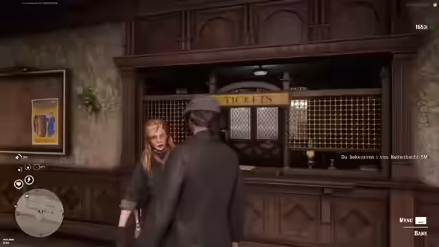 00:33:21Bei ihrem Streifzug durch Saint-Denis begegnet Lydia anderen Bewohnern und Charakteren, die die Atmosphäre der Stadt prägen. Sie unterhält sich mit Bruno, einem adligen Schmuckschmied aus Van Horn, und schließt eine Freundschaft, die jedoch schnell von Missverständnissen und ständigen Wortgefechten überschattet wird. Ihre typisch sarkastische und anklagende Art führt zu einem humorvollen, aber verbal anstrengenden Dialog, der ihre dynamische, wenn auch oft zerrüttete Beziehung widerspiegelt. Sie beschließt, gemeinsam ein Theaterstück zu besuchen, was jedoch durch eine plötzliche Schlägerei vor dem Sheriffsgebäude unterbrochen wird.