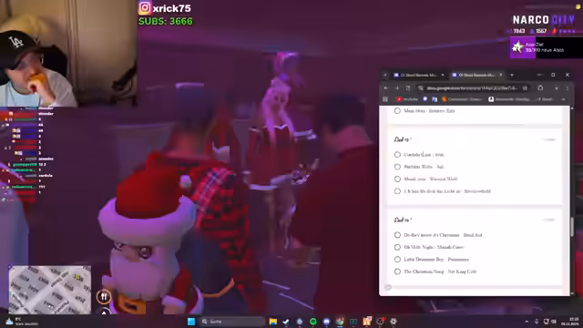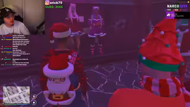 01:36:12Der Streamer und sein Team nehmen an einer Weihnachtsfeier von Oldschool Records teil. Es gibt Musik, Getränke und Geplaudere unter den Anwesenden. Der Streamer betont die Bedeutung des Zusammenhalts und des gemeinsamen Erlebens dieser besonderen Zeit. Es wird ein Musik-Quiz angekündigt, bei dem alle Teilnehmer zusammenarbeiten, um Fragen zu beantworten und gemeinsam Spaß zu haben.