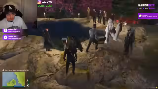 05:38:32Die Gruppe konfrontiert einen anderen Teilnehmer, 'Mr. Link', in einem aggressiven Tonfall. Die Forderung, ein Video aufzunehmen, in dem er seine Loyalität bekundet, dient als erpresserisches Mittel. Gleichzeitig wird von der Gründung eines 'unabhängigen Landes' gesprochen, mit eigenen Gesetzen und Gewässern. Diese Ankündigung steht im Kontrast zur aktuellen bedrohlichen Situation, in der die Gruppe von einer rivalisierenden Fraktion angegriffen wird.