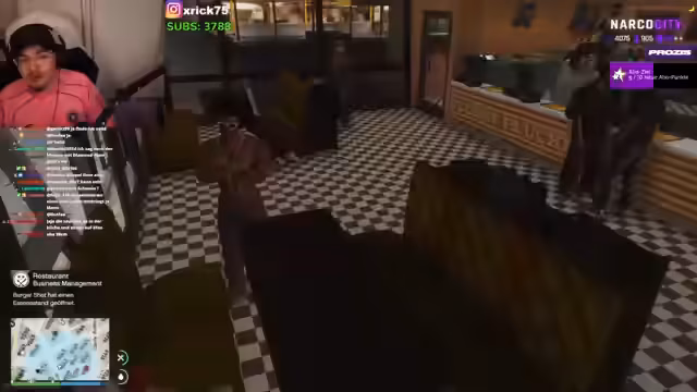 00:37:28Der Streamer stellt sich in die Rolle des Charakters Ling und startet ein interaktives Rollenspiel innerhalb einer fiktiven "Narcocity"-Welt. Er kontaktiert die Nummer des mysteriösen Osman Bennett vom Police Department (PD), um geschäftliche Gespräche zu führen. Nach einer holprigen Kommunikation wird ein Treffen vereinbart. Ling trifft im PD-Büro ein und bietet eine Partnerschaft an. Kern des Angebots ist ein exklusives Gratis-Tuning für alle Dienst- und Privatfahrzeuge der Polizisten im Tausch für Unterstützung und gute Beziehungen. Osman ist an dem Deal interessiert, aber erkennt die Mechanismen des Deals und verlangt, dass Ling sich an die Regeln hält. Beide einigen sich vorerst auf einen Handschlag als mündliche Vereinbarung.