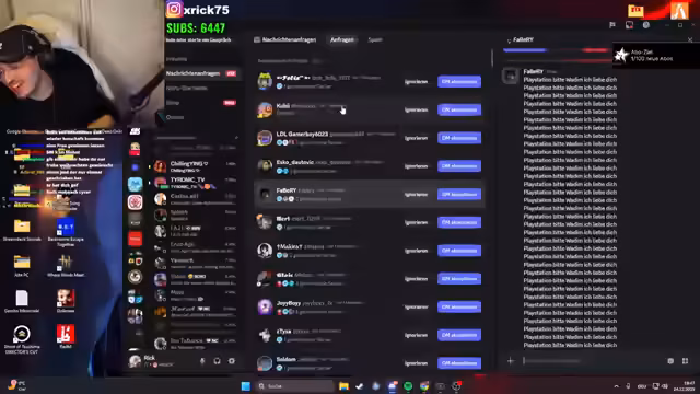 00:03:29Der Streamer ist überwältigt von massiven Direktnachrichten (DMs) durch das PS5-Giveaway. Über 176 DMs, darunter auch von bekannten Personen wie Luciano, überfluten sein Discord und andere Plattformen. Er äußert Frustration über die Unmöglichkeit, einen Gewinner fair zu ermitteln, und die ständigen Spam-Anfragen, die den Stream dominieren.