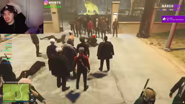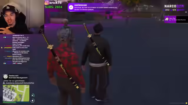 01:03:35Fabienne wird begrüßt und für ihre Funke gedankt. Es wird gefragt, warum der Naco City-Titel fehlt. Kenjis bevorstehende Operation wird erneut erwähnt, und es wird betont, dass er sein letztes Geld gespendet hat. Es wird über die Schwierigkeit gesprochen, eine anständige Frau zu finden, und der Streamer scherzt, dass er seine bereits gefunden hat. Ein Zuschauer fragt, was er lacht. Es wird festgestellt, dass ein Auto keinen Tank mehr hat und ein anderes Auto ausgepackt werden muss. Der Streamer fragt, ob die Zuschauer an den Weihnachtsmann glauben. Es wird sich darüber beschwert, dass der Streamer immer wieder auf dem Motorrad stirbt. Es wird festgestellt, dass der Friseurladen bis 21 Uhr geöffnet hat. Jason wird als 'Lutscher' bezeichnet, weil er darauf besteht, den Stream durchzuziehen, obwohl der Friseur noch geöffnet hat. Es wird vermutet, dass Leute in der Schule sind. Der Streamer und seine Begleiter besuchen das Land und werden von einem Mitarbeiter begrüßt. Es kommt zu einer Konfrontation mit jemandem, der sie zuvor bei einer Hochzeit rausgeschmissen hat. Es wird über Armut und Reichtum diskutiert.