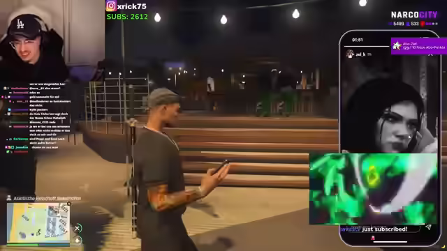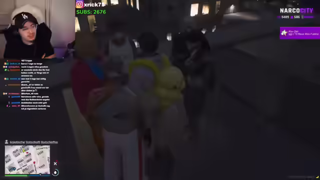 Es wird über eine mögliche Verschiebung des 12-Stunden-Streams diskutiert, ein Fabienne-Deal verhandelt und ein Casino besucht. Die Monopolstellung der Pokestreet wird thematisiert. Es folgen Planungen für eine Konfrontation mit der Organisation und Falkenberg, inklusive Ultimatum und taktischen Vorbereitungen. Der Streamer sucht Westen und Fabienne.