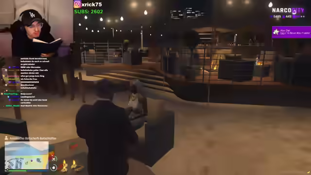 05:31:46Der Streamer bedankt sich bei Falkenberg, Hajime und Tosho für die Raids und Shoutouts. Er lobt die sportliche und lustige Atmosphäre bei Falkenberg. Es wird über die Ex-Frau des Streamers gesprochen, die mit Selbstmord droht, und er schlägt vor, ihr zu sagen, dass er gerade mit einer anderen Frau in der Skybar ist. In der Skybar angekommen, wird geflirtet und über mögliche intime Interaktionen gesprochen. Der Streamer schlägt einen gemeinsamen Trip nach Hamburg vor und äußert sexuelle Fantasien. Später wird über frühere sexuelle Erfahrungen mit einem Afrikaner gesprochen. Der Streamer unterhält sich mit einer Person namens Lovely über sexuelle Vorlieben und mögliche Treffen. Es wird über verschiedene Landsmänner gesprochen, auf die Lovely steht, und der Streamer bietet an, Kontakte zu vermitteln. Plötzlich taucht eine Person namens ZEIBOISCHOLF auf, was für Verwirrung sorgt.