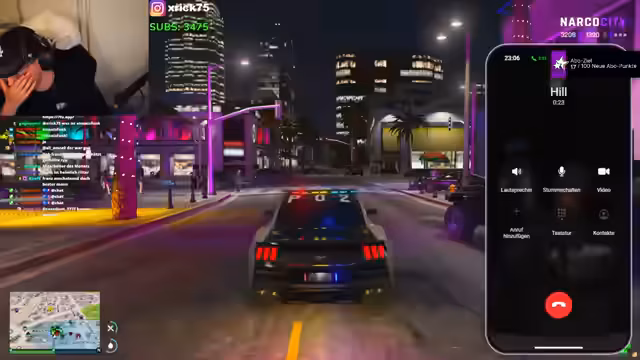 01:22:23Der Streamer beginnt eine Patrouille, die ihn an markanten Orten wie dem Cat Café und dem China-Denkmal vorbei führt. Während der Fahrt kommt es zu unvorhergesehenen Vorfällen, wie einem Unfall mit einem Tankkanister, bei dem ein Kollege namens Franz angeblich gefahren ist. Die Lage eskaliert durch einen Angriff auf eine Gruppe namens Growflang, der zu einer hektischen Flucht und der Notwendigkeit von sofortiger Unterstützung führt. Der Streamer sieht sich als Praktikant in dieser chaotischen Situation überfordert.