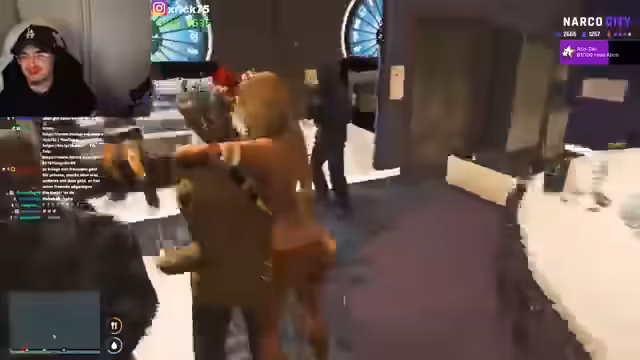03:33:31Die Situation eskaliert in einen massiven Konflikt zwischen dem Streamer und anderen Personen. Es kommt zu massiven Beschuldigungen, beleidigenden Äußerungen und rassistischen Ausfällen, insbesondere gegen Südländer. Der Streit entzündet sich an früheren Vorfällen, Vertrauensbrüchen und Vorwürfen des Verrats. Die Situation spitzt sich derart zu, dass es zu einer Geiselnahme kommt, bei der einer der Beteiligten gefesselt und mit Waffengewalt bedroht wird, um ein Gespräch zu erzwingen.