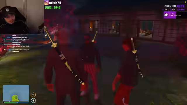 06:03:59Eine neue Allianz wird zwischen den Charakteren Abou Fatouj, Kim Sum und Olli geschlossen. Gemeinsam planen sie einen Angriff auf die Polizei (PD) und eine rivalisierende Fraktion namens Nevisiert. Der Streamer bittet seine Leute, sich ihm anzuschließen, um zum 'Nischchen' zu gehen, was als Versteck oder operationsbasis für den bevorstehenden Überfall dient.