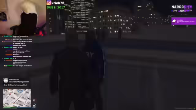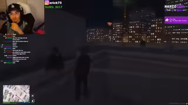 01:57:32Der Streamer wechselt nun das Szenario und widmet sich dem Thema Immobilien. Er diskutiert den Verkauf eines Gebäudes und die Mieteinnahmen. Im Anschluss daran folgt eine komplexe, improvisierte Rollenspiel-Szene, in der eine Geisel genommen und die Gefangennahme einer namens Rayuna aus dem Gefängnis inszeniert wird. Diese Szene ist geprägt von aggressiven Auseinandersetzungen, der Beteiligung von fiktiven Autoritäten und der Einbeziehung von dritten Personen wie Ivan und Vanilla.