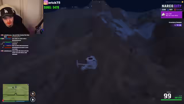 01:57:56Es gibt ernsthafte Hinweise auf den illegalen Handel, als ein User nach dem Verkauf von Westen fragt. Der Streamer reagiert frustriert, da seit drei Monaten keine Routen existieren und er die Funktionsweise des Systems nicht nachvollziehen kann. Die Stadt scheint still zu sein, was ihn zur Verzweiflung und zu spontanen, kriminellen Ideen wie dem Drehen von Pornos treibt, um aus der Stagnation auszubrechen.