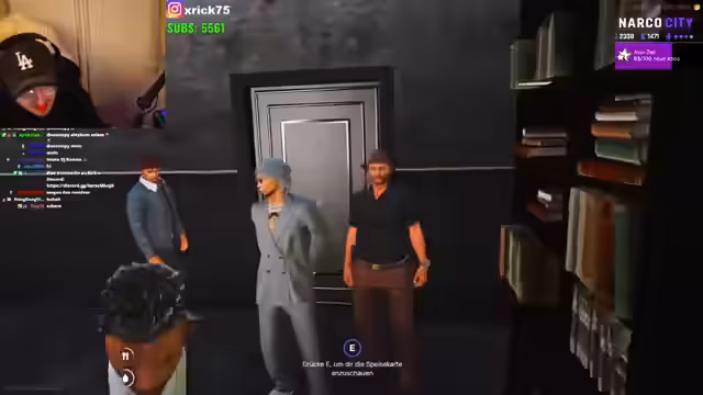 01:41:32Es wird spontan eine Hochzeit für 22 Uhr an einem unbekannten Ort angekündigt. Kim Jong soll heiraten und einen Konvoi organisieren wollen, was der Streamer für unorganisiert hält und empfiehlt, dies einen Tag vorher zu planen. Gleichzeitig gibt es Verwirrung über die Uhrzeit und den Ort. Ein User kündigt an, dass eine Bedrohung durch 30 Leute namens Santana drohe, was eine große, unvorhergesehene Eskalation andeutet.