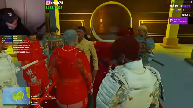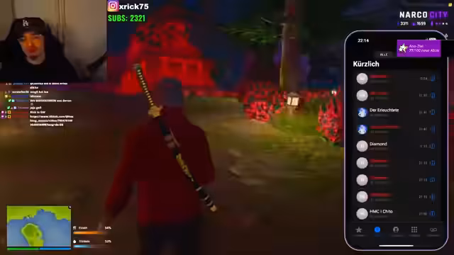 04:16:14Der Stream beginnt mit einer angespannten Konfrontation zwischen verschiedenen Charakteren im Rahmen von "NARCOCITY". Es geht um eine Schießerei, bei der ein mutmaßlicher Verräter namens Diamond zur Rede gestellt wird. Diamond beteuert seine Unschuld und behauptet, aus Verwirrung geschossen zu haben und nicht zu wissen, wer seine Leute angegriffen hat. Er behauptet, ein Anonymer Informant habe ihn getäuscht. Die Spannung steigt, als Brüder gegeneinander ausgespielt werden sollen und sich Charaktere gegenseitig verdächtigen.