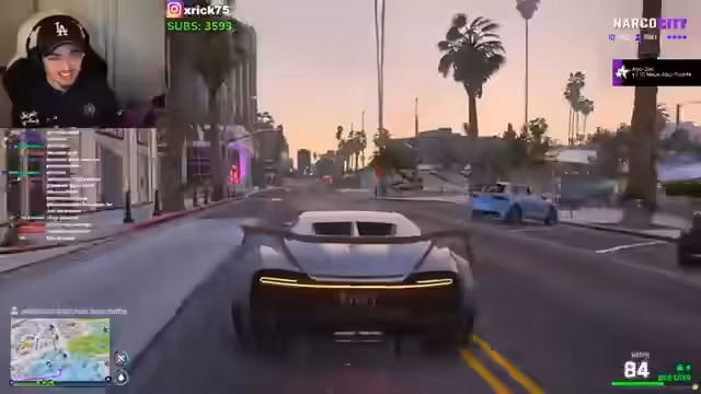 00:34:12Die Spannung kulminiert in einer realen Handlung. Während des Streams erfährt der Streamer von einem Einbruch in sein Anwesen. Er bricht sofort auf, um die Eindringlinge zur Rechenschaft zu ziehen. Es kommt zu einer gefährlichen Verfolgungsjagd durch die Stadt, bei der der Streamer und seine Gefährten auf bewaffnete Gegner treffen. Die Situation ist extrem angespannt, Schüsse werden abgefeuert und der Streamer fordert seine Leute auf, den Verfolgern aufzutauen.
