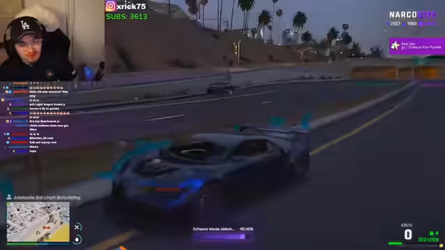 01:57:08Es finden spontane Wettkämpfe statt, sowohl im Straßenrennen als auch im Faustkampf. Ein Teilnehmer möchte um eine Million um einen Faustkampf herausfordern, während ein anderer ein Rennen um fünf Millionen gegen den Streamer fährt. Bei einem Rennen gegen einen anderen Fahrer geht eine Million verloren. Der Streamer schlägt vor, um einen höheren Einsatz zu fahren, um das Verlierergeld zurückzugewinnen und zeigt sich dabei sehr motiviert und wettkampfbetont.