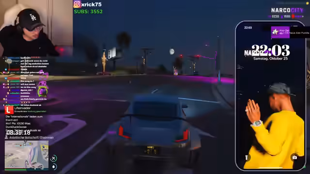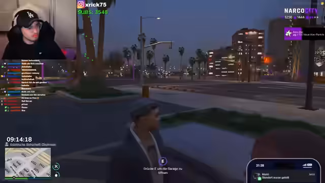 00:09:52Der Stream startet mit der Planung einer Geldwäscheoperation. Es geht darum, Geld von verschiedenen Kontakten wie Cem und Santana zu erhalten und es im System zu waschen. Der Streamer kommuniziert über die App mit seinen Kontakten und gibt Anweisungen zur Überweisung von 19 Millionen an Santana. Parallel dazu versucht er, Plus-Punkte zu verdienen, indem er seine Bankroll nutzt und Gegenstände wie Boxen oder einen 12er Rang vom Job erwirbt. Es gibt auch erste Pläne für ein Date, wobei der Chat nach Vorschlägen gefragt wird.
