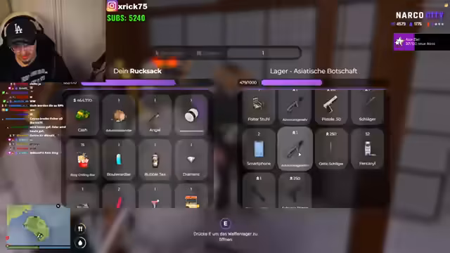 00:22:05Der Gast Tauling wird als bedeutender Besucher angekündigt, der für zusätzliche Spannung sorgen soll. Gleichzeitig eskaliert die Situation mit Santana, der die Rückgabe von Waffen fordert. Der Streamer mobilisiert seine Truppen, organisiert Waffenlieferungen und diskutiert Helikopter-Einsätze für den bevorstehenden Konflikt. Es gibt technische Probleme und Verzögerungen, aber der Streamer bleibt entschlossen und droht Santana direkt an. Die Logistik für Ausrüstung und Positionierung der Mitglieder wird detailliert besprochen.
