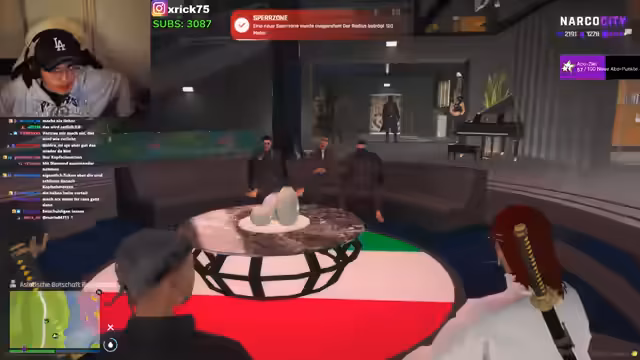 07:22:51Der Streamer erhält einen Anruf von Safi, die ihn als „verfluchte Schlampe“ beschimpft, weil er nicht zurückgerufen hat. Es stellt sich heraus, dass Safi von Diamond angerufen wurde, die eifersüchtig ist. Kurz darauf kommt es zu einer weiteren Konfrontation mit Leona, die als Sekretärin des Streamers vorgestellt wird. Es wird enthüllt, dass Leona zuvor mit dem Anrufer verheiratet war, der sie nun als „Firma“ bezeichnet. Die Situation ist von Missverständnissen und gegenseitigen Beschuldigungen geprägt. Der Streamer versucht, die Gemüter zu beruhigen, während die anderen Charaktere in die Diskussion hineingezogen werden. Die Gespräche drehen sich um vergangene Beziehungen, Untreue und die Komplexität zwischenmenschlicher Beziehungen in der Spielwelt.